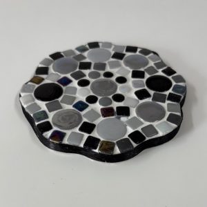 Fermijn Mozaïek doe-het-zelf-pakket 2 onderzetters Bloem (10cm) Zwart/ Wit/ Grijs