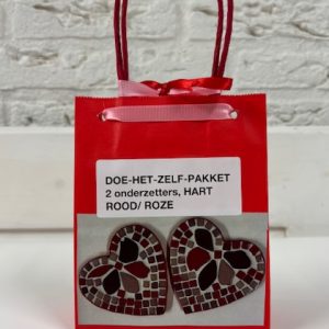 Fermijn Mozaïek doe-het-zelf-pakket 2 onderzetters Hart 10cm Rood/ Roze