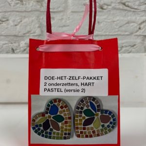 Fermijn Mozaïek doe-het-zelf-pakket 2 onderzetters Hart 10cm Pastel (nr.2)