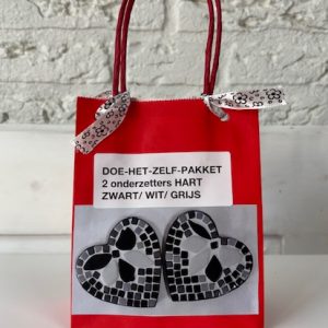 Fermijn Mozaïek doe-het-zelf-pakket 2 onderzetters Hart 10cm Zwart/ Wit/ Grijs