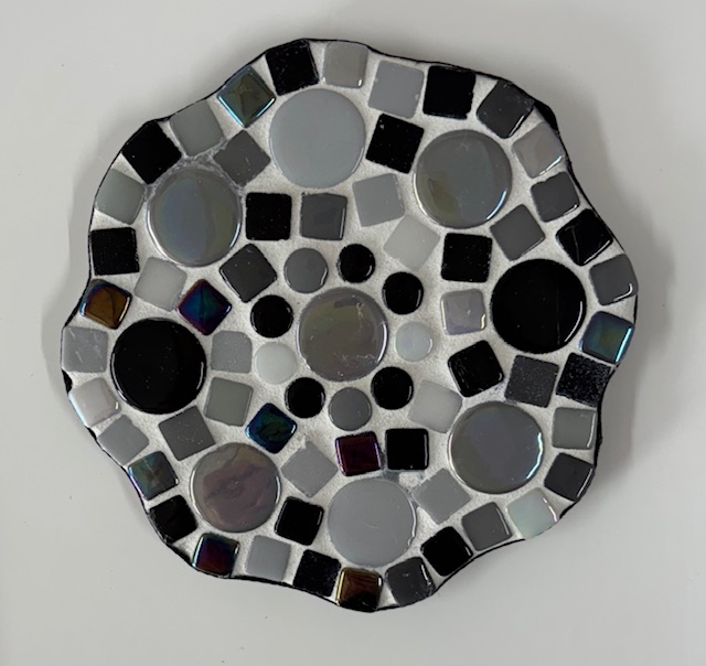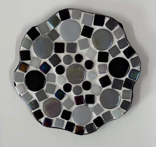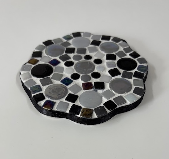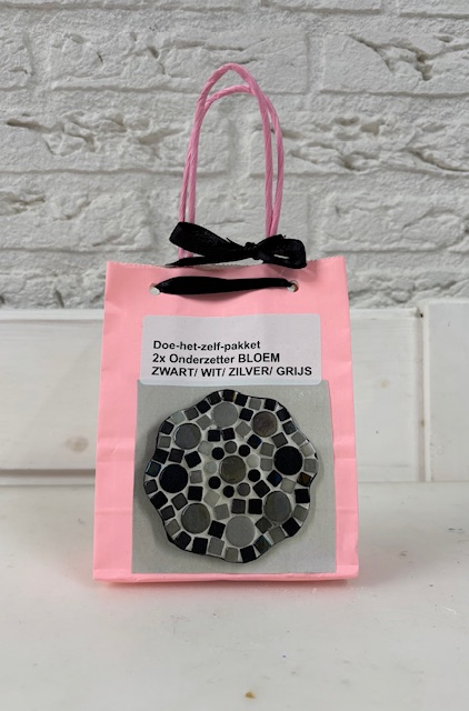 Fermijn Mozaïek doe-het-zelf-pakket 2 onderzetters Bloem (10cm) Zwart/ Wit/ Grijs