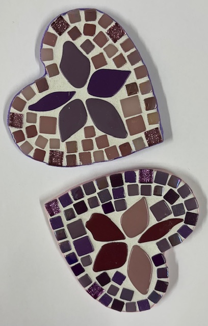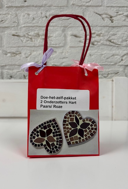 Fermijn Mozaïek doe-het-zelf-pakket 2 onderzetters Hart 10cm Paars/Roze
