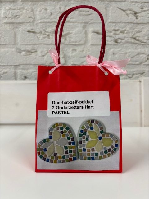 Fermijn Mozaïek doe-het-zelf-pakket 2 onderzetters Hart 10cm Pastel