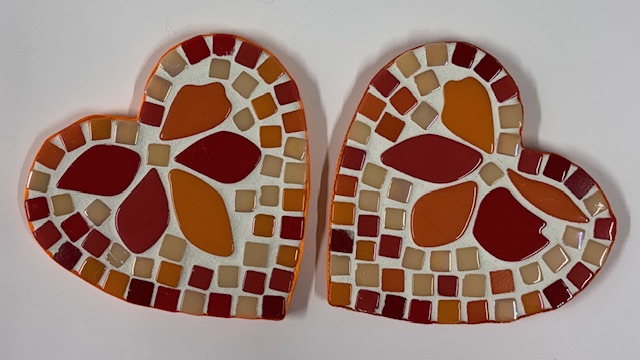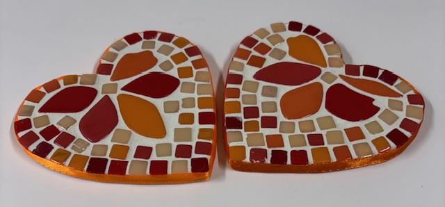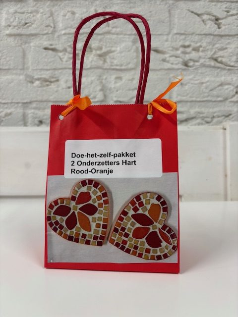 Fermijn Mozaïek doe-het-zelf-pakket 2 onderzetters Hart 10cm Rood/Oranje
